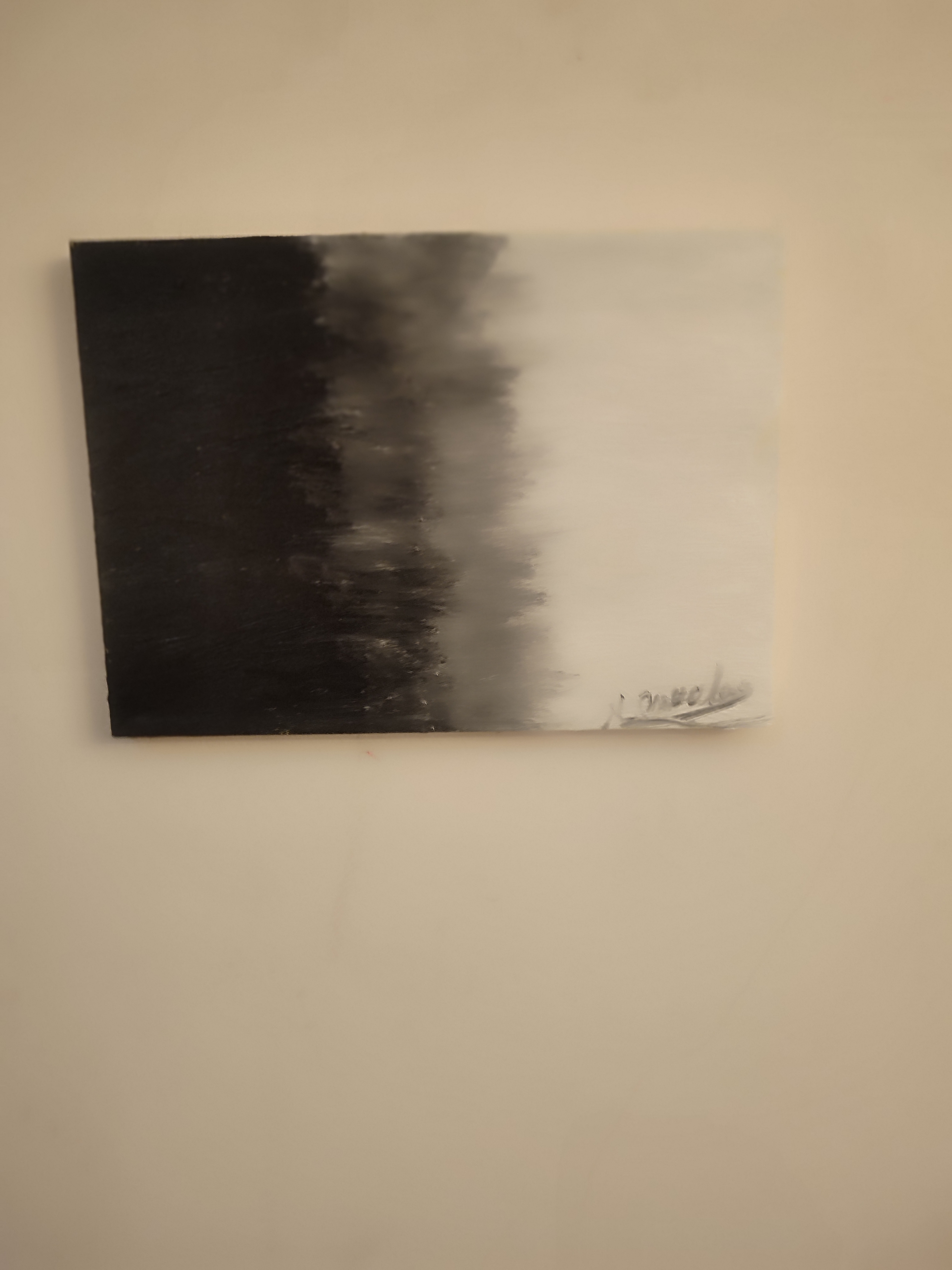 “Gri Kirlenmiş Bir Beyaz mıydı, Yoksa İyileşmeye Çalışan Bir Siyah mıydı?” Bu eser, siyah ile beyaz arasındaki keskin karşıtlığı bulanıklaştırarak izleyiciyi ikilemlerin içine davet ediyor. Tuvalin bir yanında masumiyet ve saflığı simgeleyen beyaz, diğer yanında karanlık ve umutsuzluğun sembolü siyah… Ancak aradaki gri geçiş, aslında hiçbir şeyin mutlak olmadığını hatırlatıyor. Beyazın kirlenmesi mi, yoksa siyahın arınma çabası mı? Tabloda cevap yok, yalnızca insanın kendi iç sesine yönelttiği bir soru var. Çünkü yaşam, karanlıkla aydınlığın sürekli etkileşiminden, birbirini dönüştürmesinden ibaret. Bu eser, izleyiciyi kendi içindeki çatışmalara, gölgeyle ışık arasındaki ince çizgiye bakmaya çağırıyor.