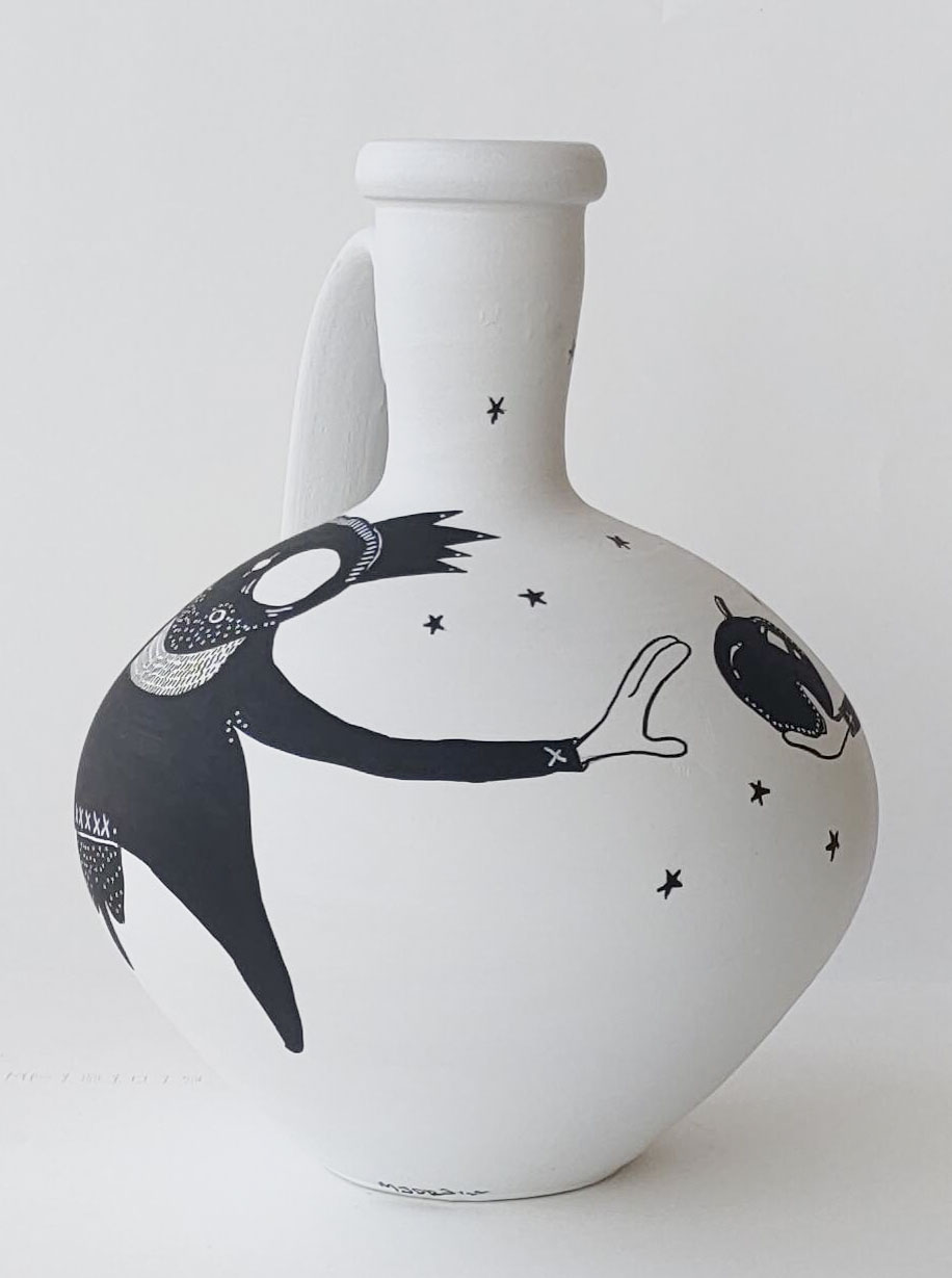 Lisans ve yüksek lisans eğitimini Anadolu Üniversitesi Güzel Sanatlar Fakültesi Cam Bölümü (2010) ve Güzel Sanatlar Enstitüsü Cam Anasanat Dalı (2013)’te tamamlayan A. Ceren Asmaz (Ankara, 1987), 2013 yılında Uludağ Üniversitesi Seramik ve Cam Tasarımı Bölümünde Araştırma Görevlisi olarak atanmış, 2014-2018 yılları arasında Dokuz Eylül Üniversitesi Güzel Sanatlar Enstitüsü Seramik ve Cam Tasarımı Anasanat Dalı’nda Sanatta Yeterlik programı süresince bu kurumda görev yapmış ve 2018 yılında Sanatta Yeterlik programını tamamlamıştır. 2018-2020 yılları arasında Kıbrıs Arkın Yaratıcı Sanatlar ve Tasarım Üniversitesi, Sanat Fakültesi, Plastik Sanatlar bölümünde öğretim üyesi ve bölüm başkanı olarak görev yapmış, 2020 yılı sonunda Türkiye’ye dönmüştür. Çeşitli sempozyum, bienal ve karma sergilerinin yanı sıra; “İnsanın kanadı; gayretidir”, “Inner Monsters: Glass Edition” ve “Arabesque” isimli üç kişisel cam sergisi; “Recipe for Disaster”, “Gopitholand: Circus” ve “Hayatının İkinci Bölümüne Hoş Geldin” isimli üç kiş sel seramik sergisi; ayrıca “İki Nehir” isimli şiir kitabı için hazırladığı illüstrasyonlardan oluşan bir illüstrasyon sergisi ve kağıt üzeri eserlerinin yer aldığı “Alegori” isimli bir sergisi bulunan sanatçının, biri heykel ikisi seramik alanında olmak üzere üç adet ödülü vardır. Sanatçının Güney Kore Uluslararası Macsabal Müzesi, Stieglitz Academy Uygulamalı Sanatlar Müzesi ve pek çok özel koleksiyonda eserleri yer almaktadır. 2021 yılında Doçentlik ünvanını alan sanatçı, atölye çalışmalarına Kayseri’de devam etmektedir. ********* A. Ceren Asmaz (born in Ankara, 1987) completed her undergraduate and graduate education at Anadolu University Faculty of Fine Arts, Department of Glass (2010) and Institute of Fine Arts, Department of Glass Art (2013), respectively. In 2013, she was appointed as a Research Assistant at Uludağ University, Department of Ceramic and Glass Design, and between 2014 and 2018, she served at Dokuz Eylül University, Institute of Fine Arts, Department of Ceramic and Glass Design, during the Proficiency in Art program. She completed her Proficiency in Art program in 2018. Between 2018 and 2020, she worked as a faculty member and department chair at Cyprus Arkin University, Faculty of Arts, Department of Plastic Arts, and returned to Turkey at the end of 2020. In addition to various symposiums, biennials, and group exhibitions, she has three personal glass exhibitions titled "İnsanın kanadı;gayretidir," "Inner Monsters: Glass Edition," and "Arabesque"; three personal ceramic exhibitions titled "Recipe for Disaster," "Gopitholand: Circus," and "Hayatının ikinci bölümünee hoş geldin"; an illustration exhibition consisting of illustrations prepared for her poetry book "Two Rivers"; and a paper-based works exhibition titled "Allegory." She has three awards, two in sculpture and one in ceramics. Her works are included in the South Korea International Macsabal Museum, Stieglitz Academy Museum of Applied Arts, and many private collections. In 2021, she was awarded the title of Associate Professor and continues her workshop studies in Kayseri.