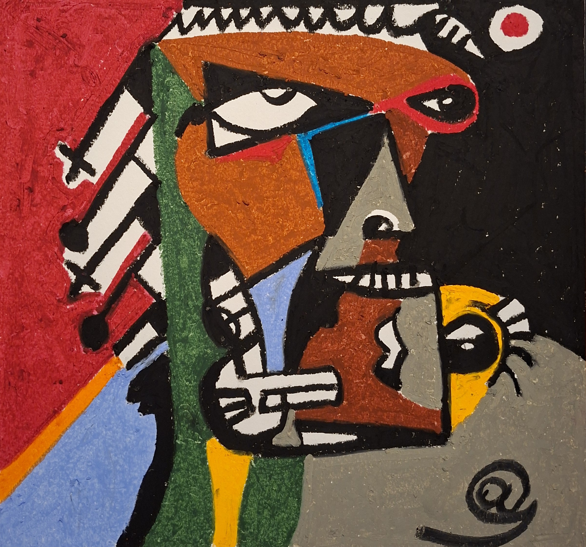 Abbas Tolgay Yılmaz is a contemporary artist and software engineer whose work blends Neo-Cubism, abstraction, and expressive color to explore identity and the fractured rhythms of modern life. Often sketching in cafés, bars, and public spaces, he transforms spontaneous observations into bold, geometric compositions that balance intuition and structure. Preparing for his first exhibition, @ presents a body of work shaped by both introspection and the communal energy of the environments where they are created.