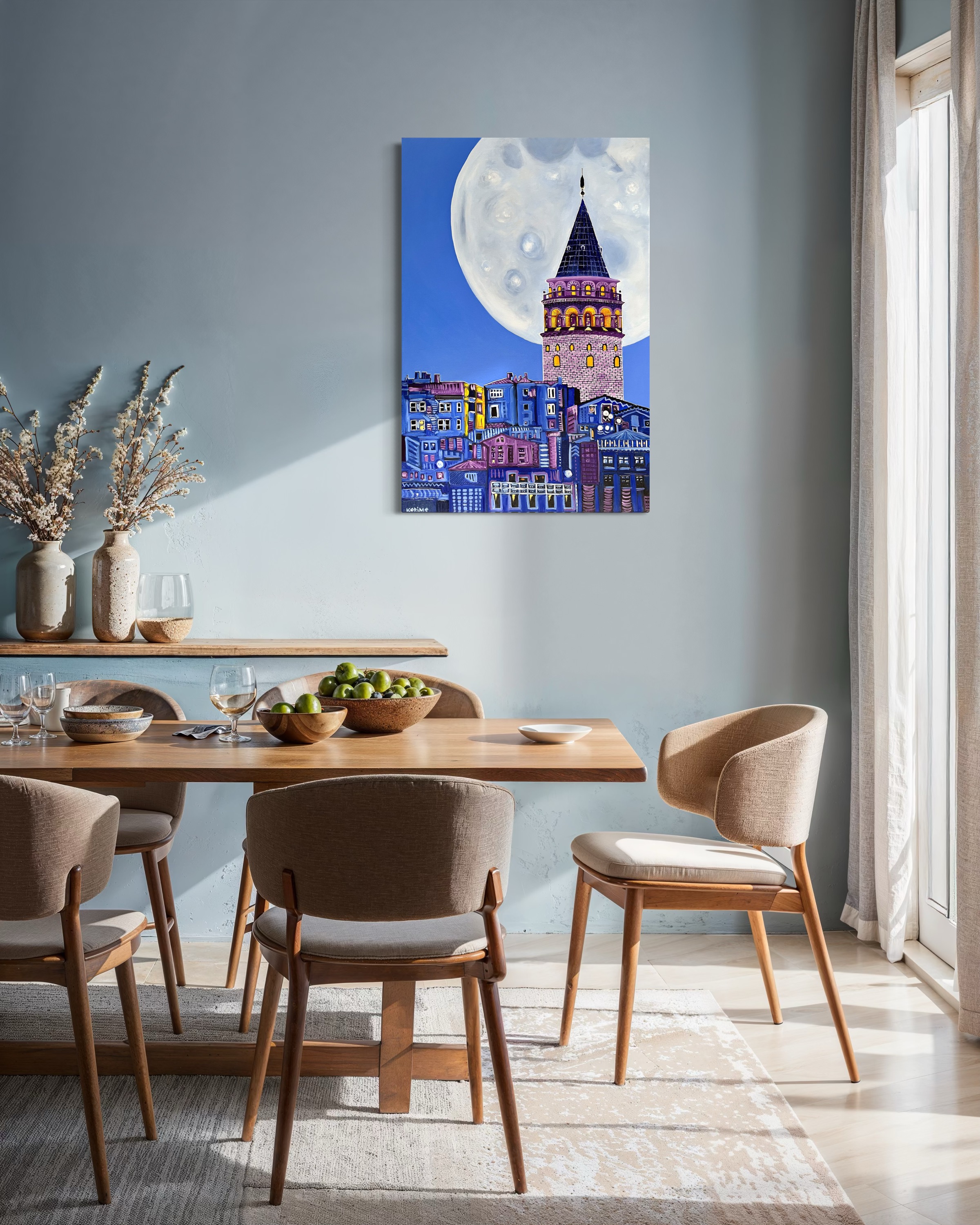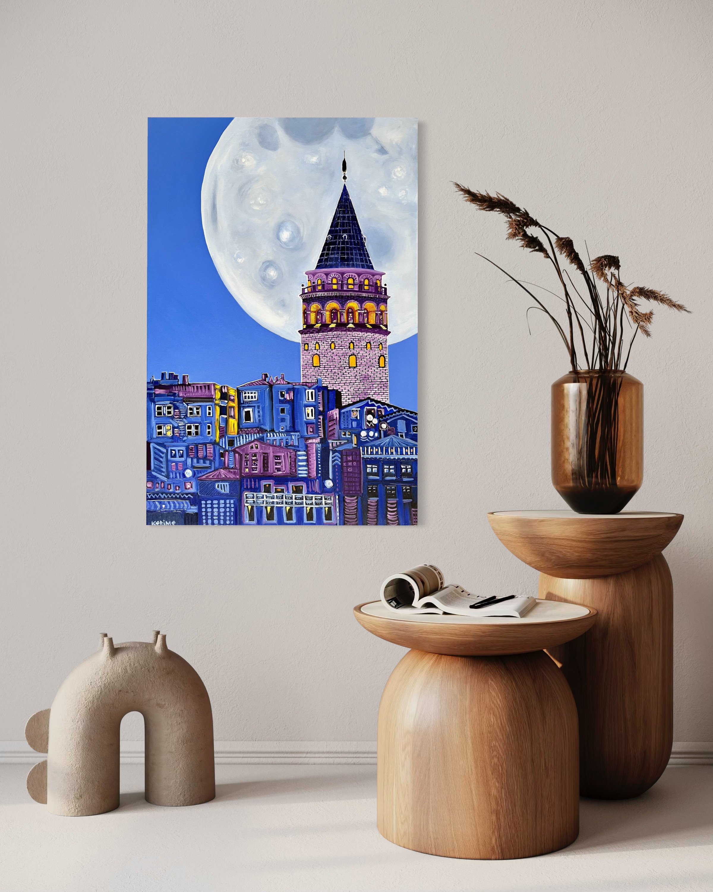 Born in 1990 in Istanbul. She has taken photography classes and begun to improve herself in the art of photography in High School. She continued her education at Istanbul Technical University's Chemical Engineering department. In those years, besides photography, she began to improve herself in fine arts by attending drawing and painting classes. In 2015, she had a master's degree in Innovation & Entrepreneurship at Imperial College London. Living in London has given her so much inspiration and willingness toward art. But also learning how to innovate with ideas developed her mind on a very creative level, and the experience in business school led her to a different career. Since 2016, she has focused on her studies of painting. She uses symbolism and tries to reflect her thoughts about reality on the canvas in an expressionist style with striking and vibrant colors. The artist, who sometimes prefers to create abstract, cubic, and minimalist works, draws her inspiration from the simplicity and strikingness of truth. In 2020, she became a full-time artist and continues her work in her workshop in Istanbul. Her artworks are exhibited in online galleries in Turkey and Worldwide. In November 2021, her artwork "Magnolia" was featured in the "Inspired by Georgia O'Keeffe" Collection of the Saatchi Art Gallery. In March 2023, her artwork "Floral Vibes" was featured in the "New This Week 03-06-2023" Collection of Saatchi Art Gallery's Chief Curator, Rebecca Wilson, and was exhibited on the home page. In 2024, her artwork "Cells of Ideas" was selected for the Saatchi Art Gallery's collection "Geometric Abstraction Inspired by Wassily Kandinsky," and her artwork "Burst of Desert" was selected for the collection "International Spotlight: Turkey".
